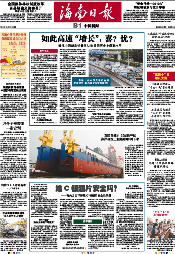 | 海南日报 中国新闻 009 2010-10-111 2010年10月11日 星期一 |