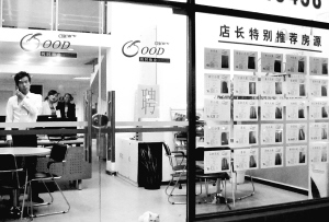 图为 10月7日,上海宛平路上的一家房产中介员工在工作。