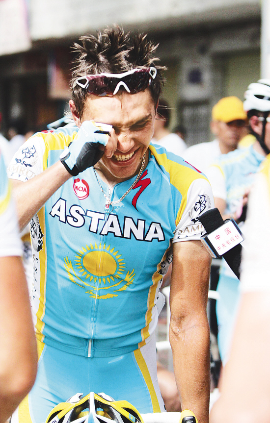 面对央视记者的镜头,阿斯塔纳职业队选手维林缇·伊格林斯基竟然有点“害羞”。 海南日报全媒体中心记者 汪承贤 摄