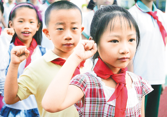 10月12日是中国少年先锋队建队61周年纪念日,共青团海口美兰区委、美兰区教育局在海口市英才小学举行纪念活动,来自辖区内各校400余名少先队代表参加活动。 本报记者 李英挺 摄