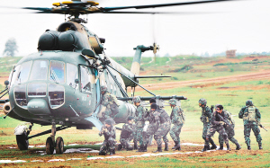 这是两国陆军首次就城市反恐课题开展联训 10月12日,中泰队员正在登机准备实施机降。 当日,在广西桂林进行的“突击-2010”中泰反恐联合训练开展混合编组机降突袭训练。此次联合训练为期15天,分展示交流、混编同训和综合演练三个阶段,主要围绕城市反恐基础技能训练、混编分队战术训练等课目进行。中泰双方各派出60人的特种分队参加联训。这是中泰两国陆军首次就城市反恐课题开展联训。 新华社发