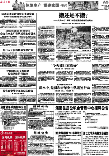 海南日报 恢复生产 重建家园·要闻 005 2010-10-131 2010年10月13日 星期三