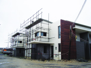 其次,验别墅本身。听现场工人说,十一前完成了部分别墅房顶、露台、阳台的防水工程。本想节后进行防水验收,没想到大雨帮他们提前完成了验收。做完防水的屋面全部无渗漏现象验收合格。李先生购买的合院别墅正好也在其中。