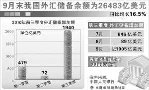 分析人士认为,非美货币大幅升值下,以获利为目的的短期资本加速流入,是三季度我国外汇储备大幅增长的一个重要原因。当前应警示“热钱”流入可能对我国经济造成的冲击和影响。
