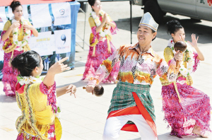 | 车手抵达第三赛段终点兴隆时,当地观众跳起了东南亚风情舞迎接车队到来。