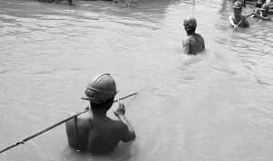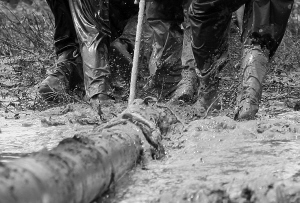 洪灾后,滩泥漫脚,部分地段洪水仍未完全消退,部分地方还有2米的深水位。工人们在泥泞中拉着沉重电线杆,脚打滑栽倒,再爬起来。但他们没有任何怨言,一位操着四川口音的工人说,我老家经历过汶川地震,我理解灾区村民的心情,为了灾区村民早点用上电,我们辛苦也值!