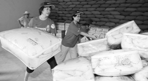 10月13日,安利海南分公司采购10万余元的生活必需品送往文昌、万宁等地。这些物资将由当地民政部门发放给受灾群众。 本报记者 李英挺 摄