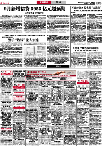 9月新增信贷5955亿元超预期