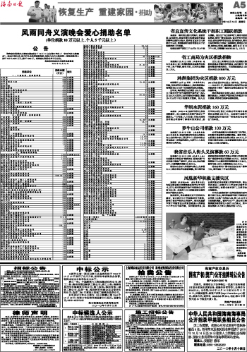 海南日报 恢复生产 重建家园·捐助 005 2010-10-141 2010年10月14日 星期四