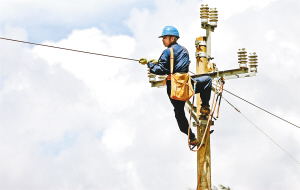 | 10月15日,文昌市会文镇文林村,文昌电网施工人员正加紧施工,为我省最后一个因灾停电村文林村架设电线。