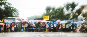 | 尽管大雨,但琼中乌石观众还是冒雨在等待着观看环岛赛。