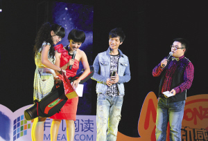 | →10月15日晚举行的陈楚生歌友会上,歌迷为他送上礼物。