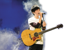 | ↑10月12日晚,陈楚生在海南“风雨同舟”大型赈灾义演晚会上深情演唱。