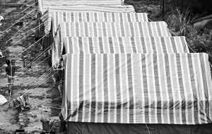 雨,时大时小,似乎不想停歇。在陶坡小学一间教室内,群众正在领取政府及企业捐赠的衣服。男人与女人都可以领到2套衣服,小孩则可领到1套衣服。