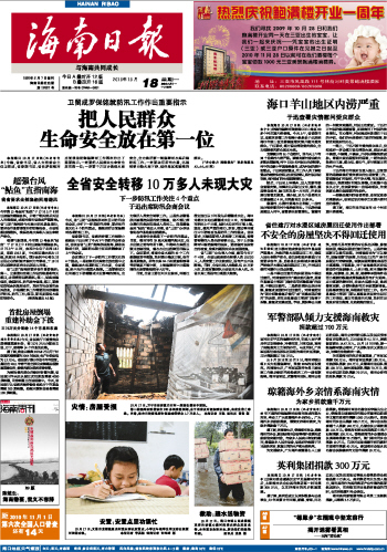 | 海南日报 头版 001 2010-10-181 2010年10月18日 星期一 |