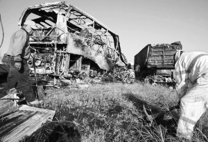 21人丧生 10月18日,工作人员在墨西哥克雷塔罗郊外圣路易斯波托西附近清理交通事故现场。当天,一辆公共汽车与一辆装有工业废料的汽车在此相撞并起火燃烧,造成至少21人丧生。 新华社发