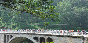 | 10月19日,车手骑行在风景美丽的第九赛段中。 海南日报全媒体中心记者 宋国强 摄 |