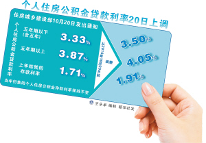 新华社北京10月20日电(记者杜宇)住房城乡建设部20日发出通知,即日起调整个人住房公积金贷款利率,五年期以下(含五年)从3.33%调整为3.50%。