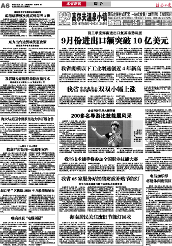 海南日报 本省新闻 006 2010-10-211 2010年10月21日 星期四