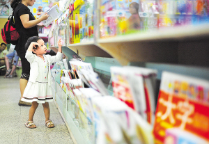 ④一位小朋友从幼儿识字图书专架前走过,在她身后,她的家长正在给孩子选购这些书籍。 新华社记者 梁旭 摄