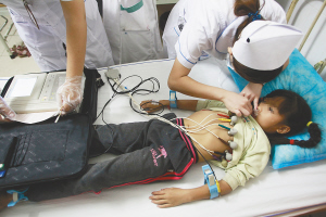10月21日,从教学楼坠落受伤的小学生在医院接受治疗。 当日下午4时40分左右,广西柳江县洛满镇洛满中心小学一栋两层教学楼二楼走廊护栏发生坍塌事故。截至21日晚9时,共有27名学生坠落不同程度受伤,4人伤势较严重。新华社发 广西