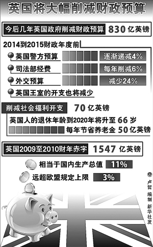 按削减计划,英国外交部将减少24%的预算,警务费用每年将下降4个百分点,内政部和司法部开支减少6个百分点。