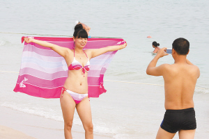 10月21日下午,三亚大东海风平浪静,游客云集。他们来到清凉的海边,尽情地享受着秋日的凉爽。 特约记者 孙清 摄
