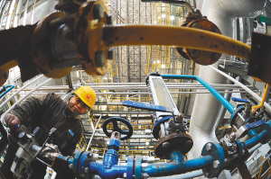 工人在秦皇岛垃圾发电供热项目垃圾焚烧车间工作。 日前,河北省秦皇岛市总投资4.5亿元的垃圾焚烧发电供热项目竣工,设备调试完毕,即将投产。该项目设计日处理生活垃圾1000吨,配有两台9MW的凝汽式汽轮发电机组发电,并可向当地居民和工业企业供热。 新华社记者 杨世尧 摄
