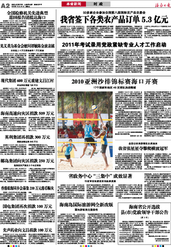 海南日报 本省新闻 002 2010-10-221 2010年10月22日 星期五