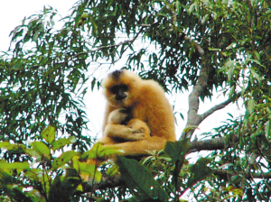 “长臂猿曾是海南岛的广布种。”刘振河,华南濒危动物研究所研究员,国内第一个完成海南长臂猿生态学研究报告的动物保护专家。他告诉记者,上世纪60、70年代在海南岛鸟兽资源的调查中,调查队在海南的各大山区,如五指山、吊罗山、尖峰岭、霸王岭、黎母山发现了长臂猿,至少有6个市县分布着长臂猿。“当时,海南长臂猿还能看见。在尖峰岭时,调查队员住在林业局招待所,每天早晨都能在它们清脆的鸣叫声中醒来。”