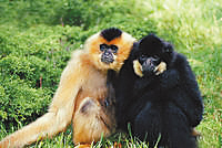 | 海南长臂猿母子。