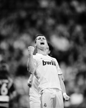 24日,在西甲联赛中,皇马6:1战胜桑坦德。克·罗纳尔多庆祝进球。 新华社发