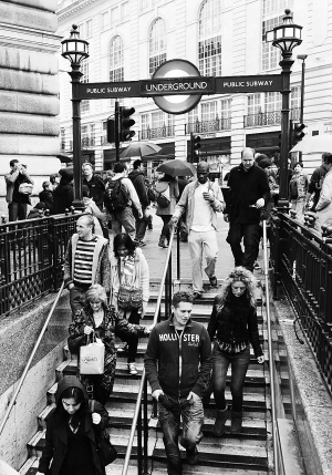 | ←在英国首都伦敦,行人走进一个地铁站。新华社发 |