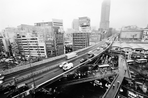 | 在东京涩谷,首都高速公路、涩谷车站、公交车站、行人高架桥等构成立体交通枢纽。 新华社发 |