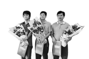 | 海南奥林匹克花园长篇小说大奖赛第二年度优秀作品奖及提名奖的三位得主,中为崽崽。 纪惊鸿 摄 |