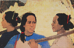 在罗先生描绘海南的作品中,给人印象最深的是几幅肖像写生:《黎家姐妹》《半边天》《女突击队员》等,几乎他所有的画集都收印了这几幅肖像。但风景却少见,或许,相较肖像而言,他真的不是很满意。然就先生的艺术经历来说,这是一段很重要的“蜕变”过程。他自称:“我一生有两次最主要的艺术变革,一次是木刻,一次是油画。”而油画的变革就和海南有很大的关系。