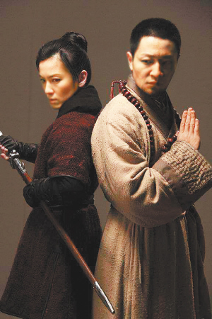 相比之下,吴宇森监制、苏照彬导演的《剑雨》更能满足人们对江湖的想象。《狄仁杰》成功地把电视剧《神探狄仁杰》的群众基础转化成了票仓,它虽然披了武侠片的外衣,但本质上是一部公案片,狄仁杰、上官静儿、裴东来都是官府中人,吸引观众的主要是焚尸案的匪夷所思和解谜张力。而《剑雨》全然不同,它有两个武侠小说常用的母题:复仇和归隐。前半生以杀戮造孽的“细雨”经过高僧点化,改头换面、悔过自新,准备平淡度日、了此一生,但仇家和同伴不约而同地找上门来,一边要她血债血还,一边要她继续为恶。“细雨”能否躲过此劫,这个疑问从头到尾紧抓着观众。一方面是“人在江湖,身不由己”的无奈,另一方面是每个人物都对世俗生活的向往,中间还夹杂着忏悔、原谅和救赎的复杂情愫。《剑雨》具备武侠电影的基本元素和模式,又加入了一些人性的探讨和禅意的思索,人物形象鲜明,用意深邃悠远,堪称近年来难得的佳作。