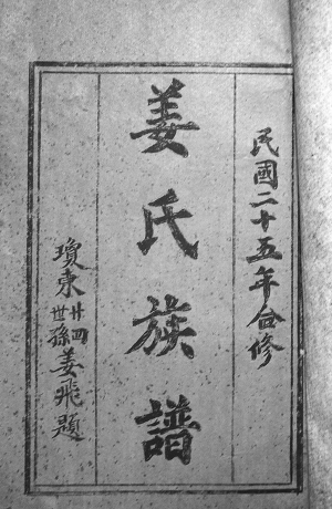 记者访问姜维民时,他捧出了一大摞新旧参差的姜氏族谱。最早的一部谱牒修于南宋祥兴二年(1279年,宋王朝的最后一年),撰写谱序的是“七世孙”姜源,文中写到:华夏姜氏的始祖为神农炎帝,历代有分封各国(诸侯国)的后裔,后来有子孙迁居“闽越”一带,但具体年月已经无据可考;北宋初年,福建福州府古田县钓国村有位名叫姜天赐的村民,生了元熹、元勲、元弘、元韶4个儿子,兄弟4人长大后,一起前往今天的广州,此后姜元弘落籍廉州府钦州,姜元熹、姜元勲、姜元韶则继续南下琼州,来到澄迈,落户在儒姜村。