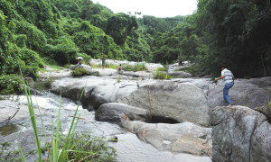 绕过一段山路后,王公存带我们再次来到溪水旁。溪还是那条溪,只是河床上只有岩石不见沙。脱鞋趟溪,凉意再袭,爬山的疲劳瞬间没了,戏水的冲动来了。