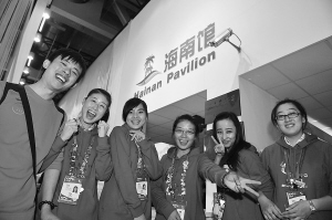 | 10月31日,2010上海世博会海南馆里,部分工作人员开心地合影留念。