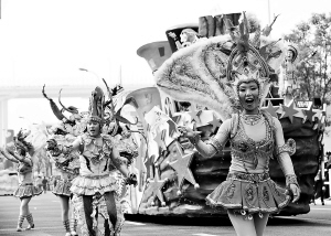 | 10月31日,参与花车巡游的演员在浦东线上行进。 新华社记者张国俊摄 |