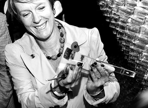 | 10月31日下午,英国环境、食品与农村事务大臣卡罗琳·斯佩尔曼拆下英国馆“种子圣殿”的第一根亚克力杆,拿出螺丝钉。 新华社记者凡军摄 |