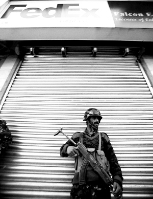 ← 10月30日,在也门首都萨那,警察在美国联邦快递公司在萨那的分公司门口警戒。也门安全部门当日关闭了两架载有炸弹包裹货机所属的快递公司———美国联合包裹服务公司和美国联邦快递公司在萨那的分公司。 新华社/路透