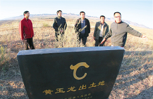 内蒙古翁牛特旗文物普查队员在“华夏第一龙”出土地考察(10月31日摄)。 国家一级文物国宝“华夏第一龙”出土地经中国社科院考古研究所和翁牛特旗博物馆田野考古专家在翁牛特旗乌丹镇新地村东拐棒沟红山文化遗址区中寻找确定。 新华社发