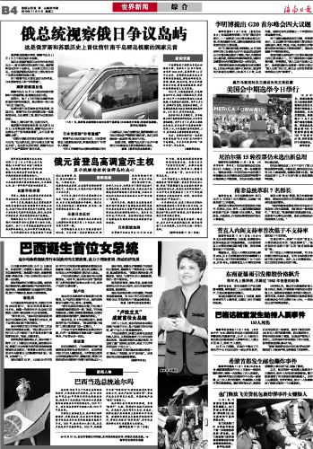 海南日报 世界新闻 012 2010-11-021 2010年11月02日 星期二