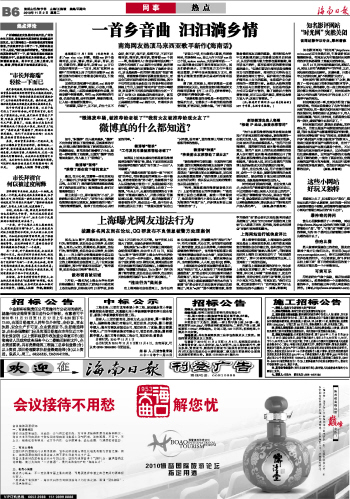 海南日报 网 事 014 2010-11-021 2010年11月02日 星期二