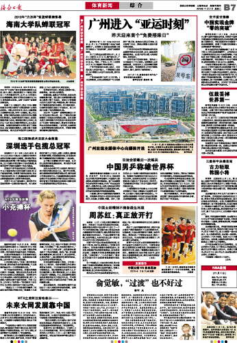 海南日报 体育新闻 015 2010-11-021 2010年11月02日 星期二