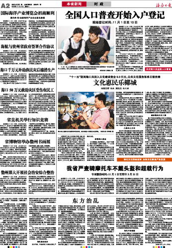海南日报 本省新闻 002 2010-11-021 2010年11月02日 星期二
