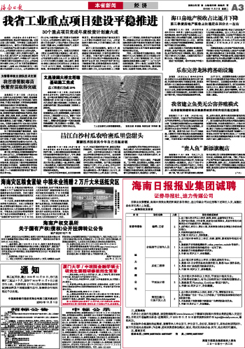 海南日报 本省新闻 003 2010-11-021 2010年11月02日 星期二