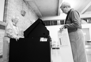| 11月2日,一位女士在美国纽约州的一处投票站参加中期选举投票。